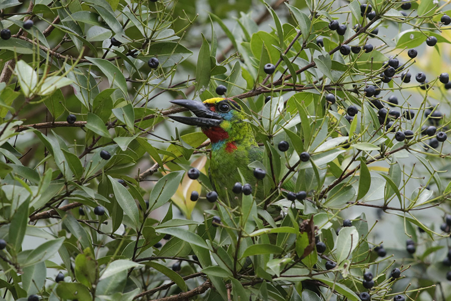 Samsul Rizal, Leader CRU Sampoiniet mengatakan, takur warna warni beberapa kali terlihat di pepohonan terutama saat musim buah.