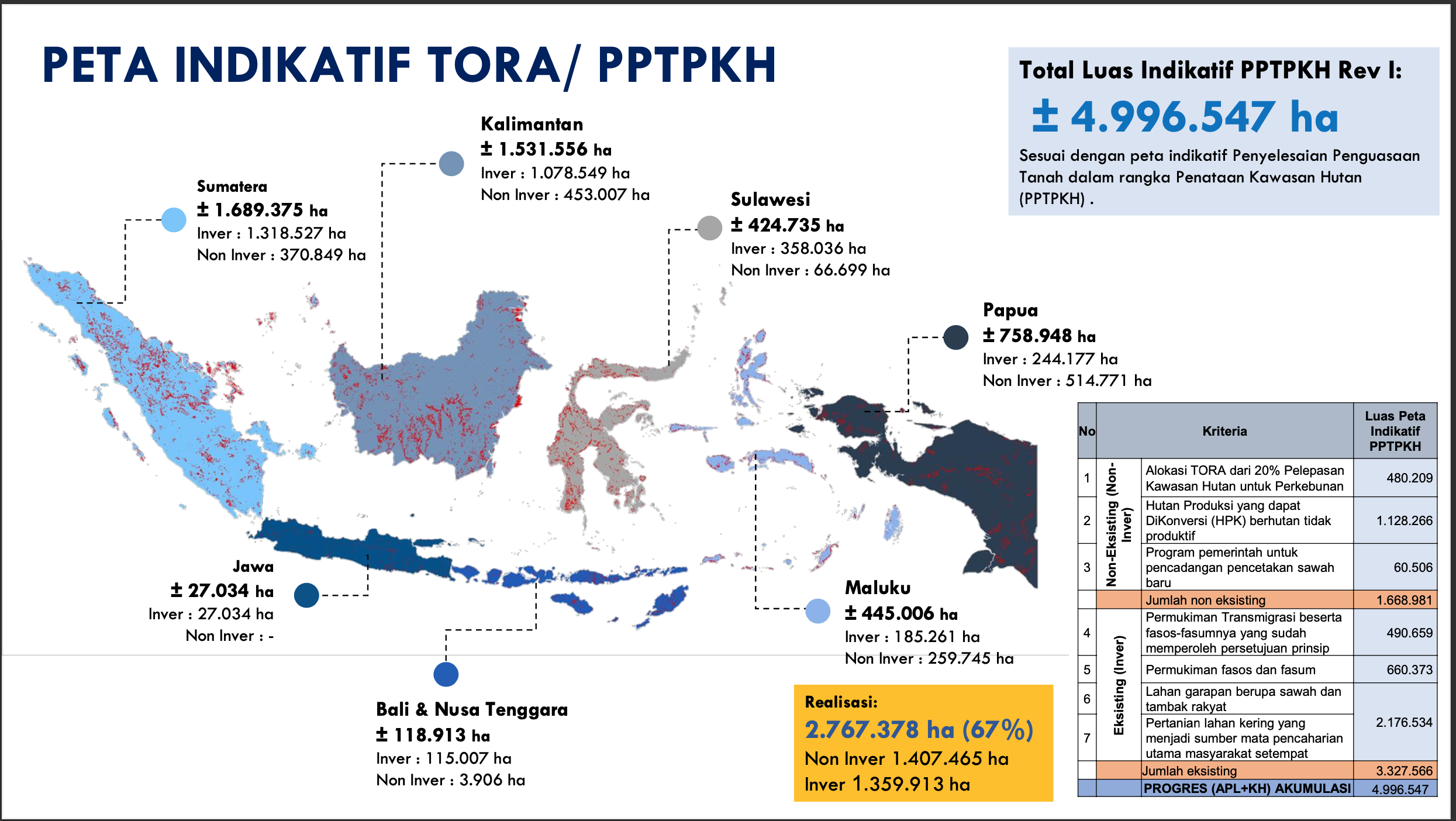 “Intinya dari catatan kami realisasi di kawasan hutan baru 67 persen dari 4,9 juta hektar atau sekitar 2,7 juta hektar. Kami harapkan tuntas dalam dua tahun ke depan,” katanya.