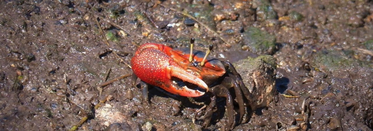 Sekelompok kepiting mangrove Uca ditemukan di sungai Tanjung Piayu, Sei Beduk, Kota Batam, Provinsi Kepri. Meskipun hutan mangrove sudah hilang di sekitar mereka namun hewan yang juga diberi nama kepiting biola ini juga masih terlihat. Kepiting biola memiliki capit yang unik, pada spesies jantan kepiting ini terlihat memiliki capit satu. Namun, penelitian menyebutkan capitnya tetap … Lanjutkan membaca Mengenal Kepiting Biola, Si Tukang Gali Lobang yang Unik