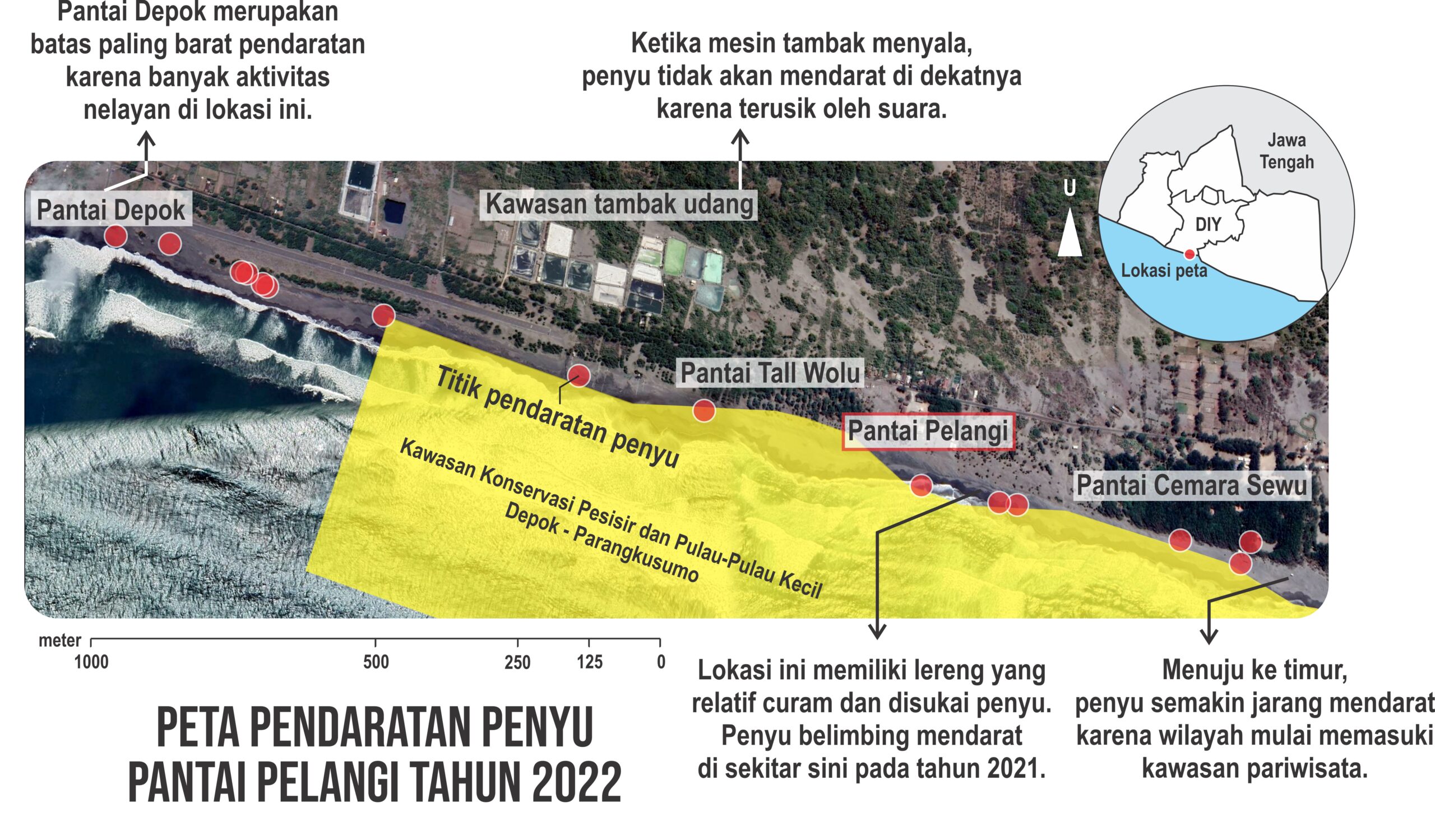 Dari enam spesies di Indonesia, empat mendarat dan bertelur di pesisir selatan Kabupaten Bantul, Provinsi DIY.