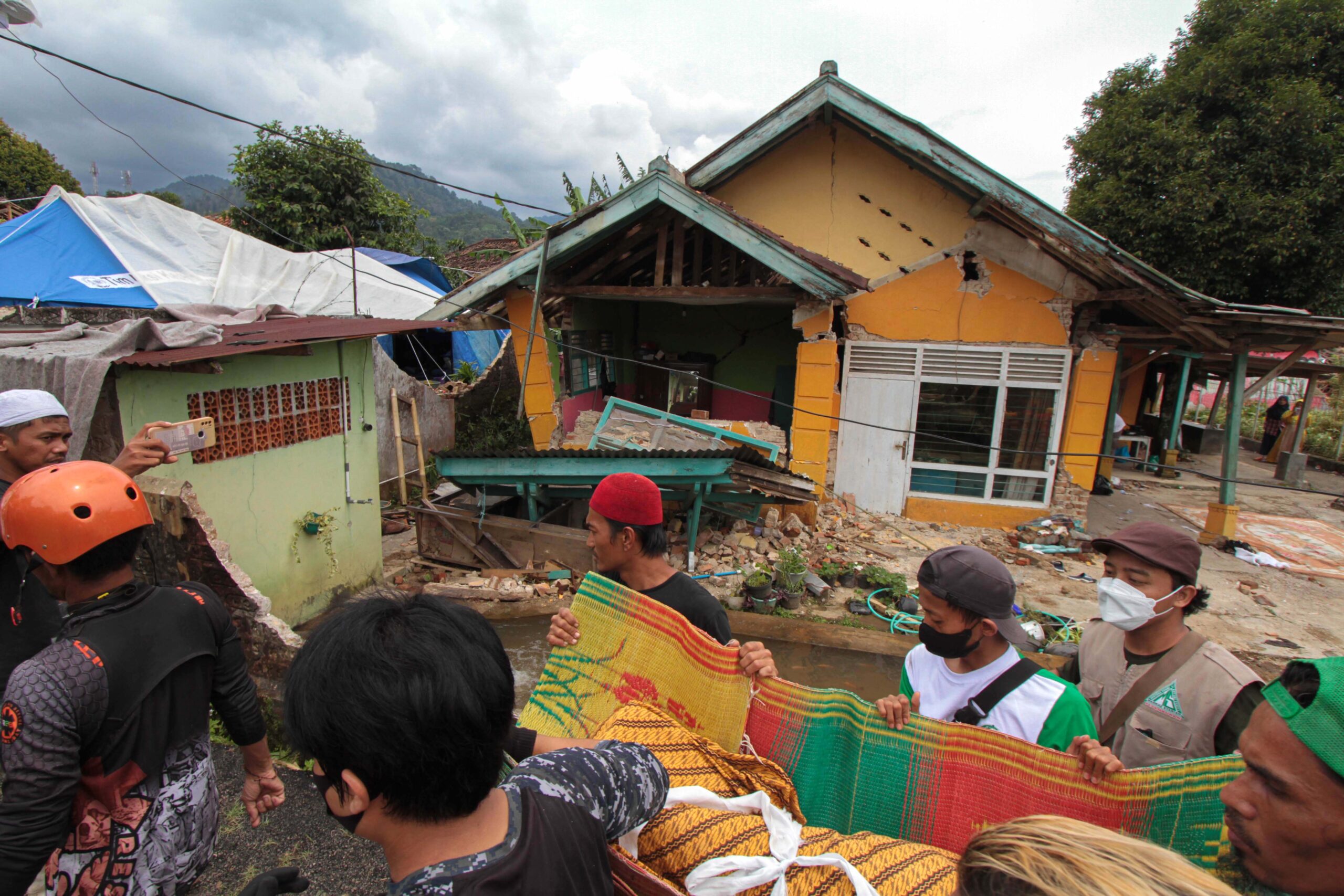 - Dayi Mahmudin (40) dan keluarganya selamat dari dampak gempabumi Cianjur karena berada dalam rumahnya yang berbentuk rumah panggung dengan dinding dari bambu.