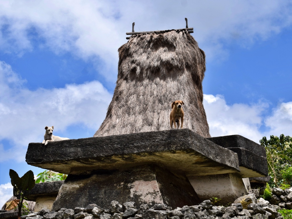- Rumah adat Sumba dibangun berdasarkan kepercayaan Marapu, dengan empat pilar utama yang melambangkan empat mata angin. Juga ada dua pilar induk simbol ayah dan ibu. Pria dan wanita Sumba biasa disimbolkan dalam ornamen buaya yang perkasa dan penyu yang setia dan lemah lembut