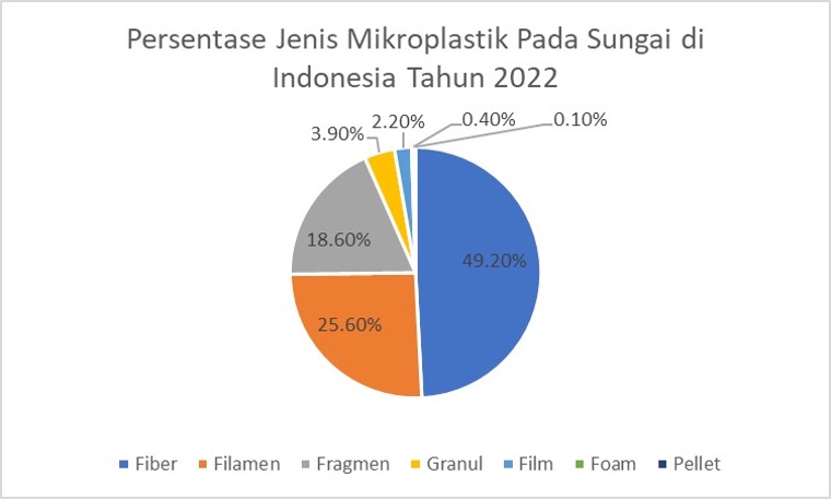 Jenis filamen sekitar 25%, dari degradasi sampah plastik sekali pakai seperti kresek, botol plastik, kemasan plastik single layer, dan jaring nelayan. Untuk fragmen sekitar 10%, berasal dari deradasi sampah plastik sekali pakai seperti kemasan sachet multilayer, tutup botol, botol shampo, sabun, dan lain-lain.