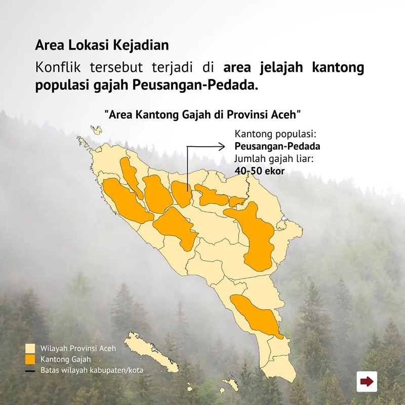 “Kalau kejadian di kawasan hutan, tidak bisa disebut konflik. Ini dikarenakan kawasan tersebut merupakan habitat dan jalur lintasan gajah. Masyarakat juga paham, wilayah itu lintasan gajah,” ungkapnya.
