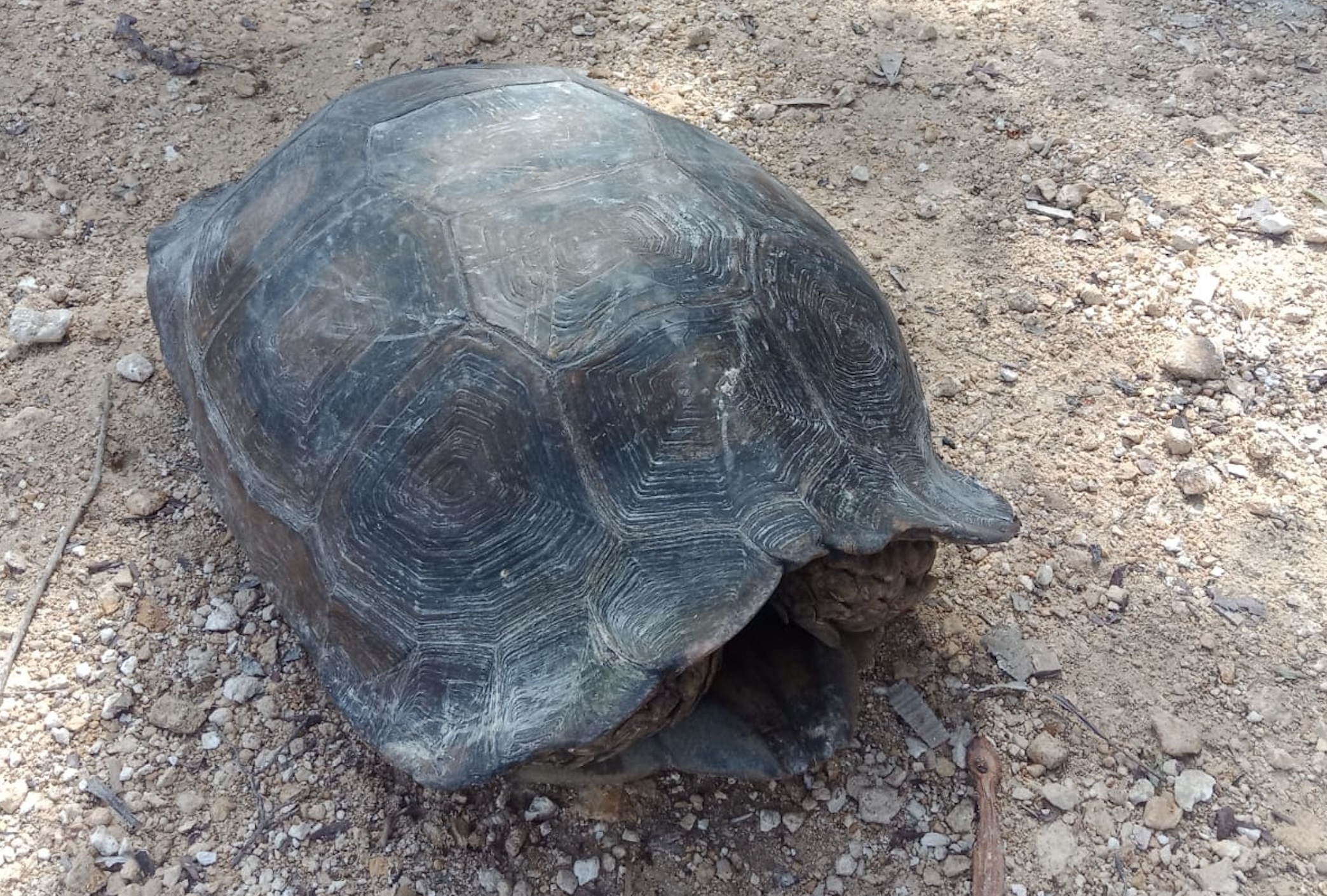 “Ini jalur baning (kura-kura hutan), beberapa hari lalu lewat sini. Ukurannya badannya besar dan tempurungnya berwarna cokelat,” lanjut Sapar.