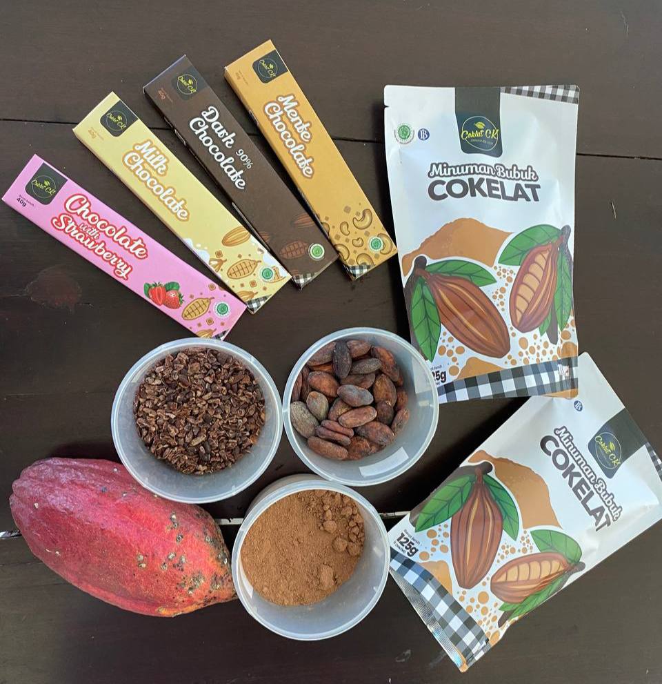 Hasilnya dipajang di lemari, ada cokelat batang berbagai varian dan cokelat bubuk untuk minuman. Rumah Cokelat ini kecil, namun energi para perempuan petani membuat begitu bungah. Kelompok ini berusaha memasarkan ke sejumlah minimarket dan pameran-pameran UMKM.