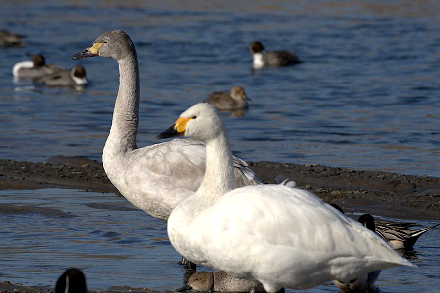 Elmira dan kolega mengamati perilaku angsa Whooper [Cygnus cygnus] dan Bewick’s [Cygnus columbianus bewickii], yaitu saat angsa-angsa tersebut dalam kondisi bahaya, saat berenang dan terbang, serta ketika bersama anaknya.