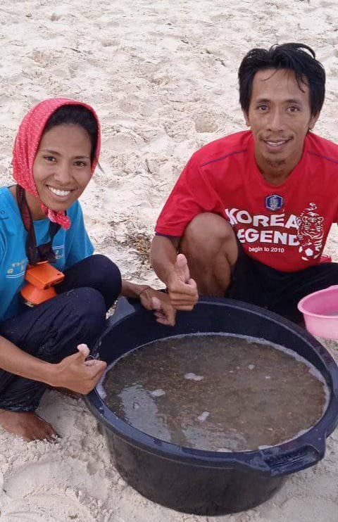 Elis Lekatompessy, seorang warga Desa Amahusu bersama kerabatnya terlihat ikut timba laor. Hari itu Elis datang lagi, setelah sehari sebelumnya datang, namun belum terlihat biota laut ini.
