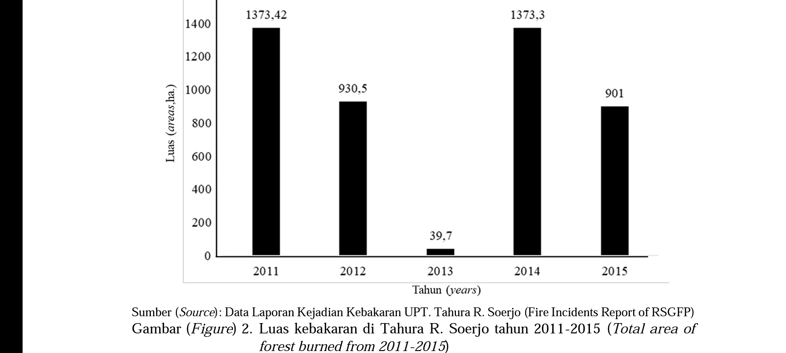 Selama kurun sama, total tahura yang terbakar mencapai 4.000 hektar lebih. Rinciannya, 1.373,42 hektar pada 2011, 930,5 hektar dalam 2012, lalu 39,7 hektar pada 2013. Kemudian, seluas 1.373,3 hektar pada 2014 dan 901 hektar pada 2015.