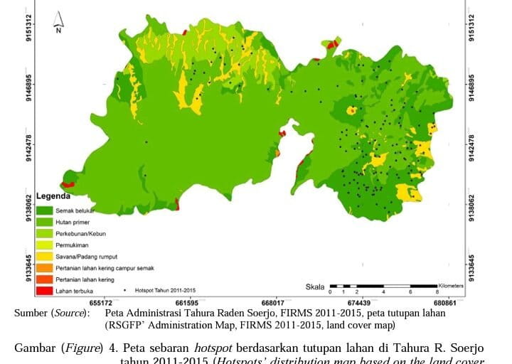 “Sebaran hotspot dominan terjadi pada daerah lereng yang landai dengan kemiringan 8-15%,” tulis Hamam dalam laporan yang dipublikasikan Jurnal Penelitian Hutan dan Konservasi Alam pada 2021 itu.
