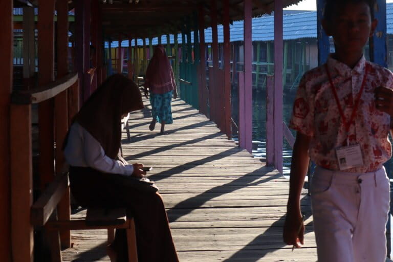 “Ketika musim hujan atau cuaca ekstrem, saya tidak sekolah, takut jatuh sakit. Hujan juga sulit ke daratan untuk sekolah,” kata Kamelya.