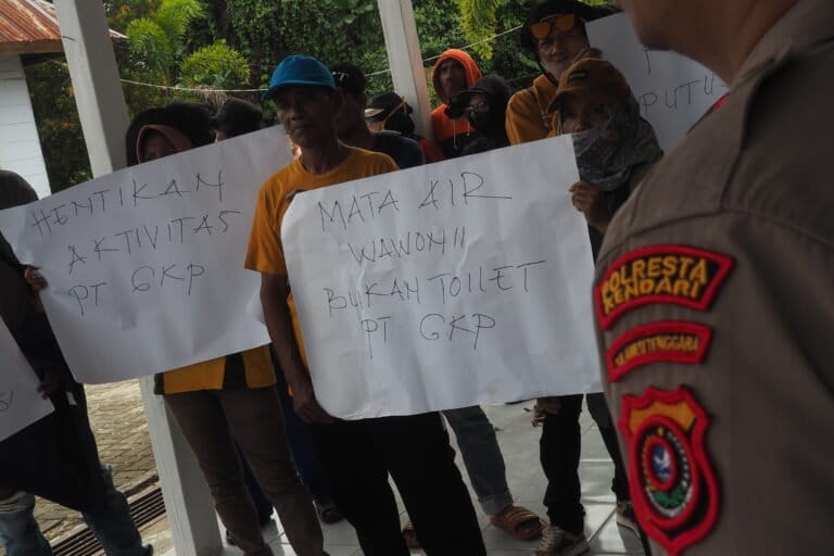 Dugaan kuat muncul pencemaran air sampai ke penampungan air bersih itu dampak perusahaan tambang nikel, PT Gema Kreasi Perdana (GKP) mulai beroperasi. Perusahaan membuka jalan tambang (hauling) dan menambang nikel di gunung,