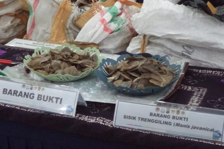 Menurut Ronny, trenggiling ini dilindungi UU dan masuk daftar spesies Apendiks I CITES yang dilarang untuk diperdagangkan.