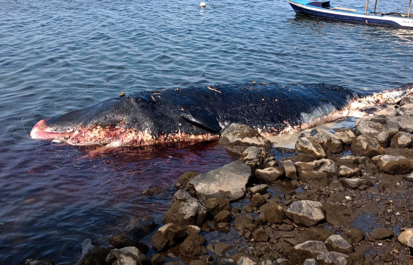 Meski begitu Dimas yang turun ke lokasi dan melakukan identifikasi itu belum bisa memastikan penyebab kematian karena kondisi bangkai paus telah membusuk untuk mengetahui luka.