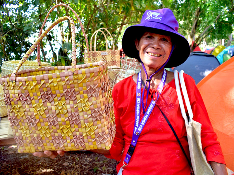 “Kami bisa menganyam apa saja, sesuai pesanan. Ada tas perempuan dan tas belanja. Ada juga tempat tisu, pot bunga, hingga tas laptop. Harganya mulai 50 ribu hingga 100 ribu Rupiah,” jelasnya.