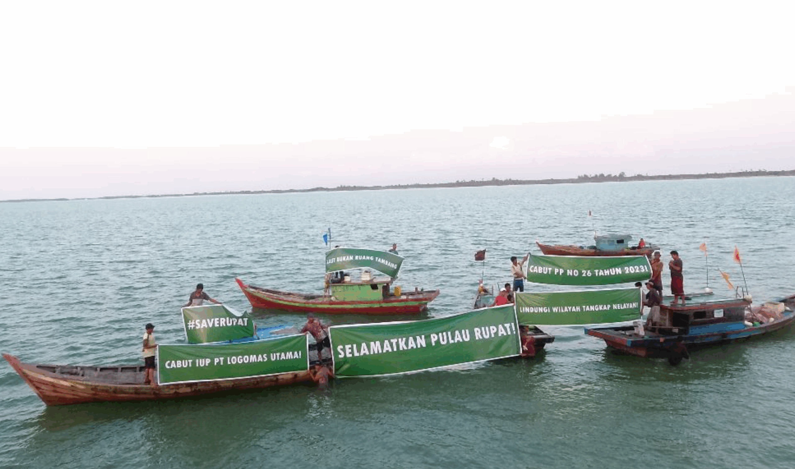 Aksi yang dilaksanakan di sekitar Beting Aceh dan Pulau Babi, Rupat Utara ini merespon diterbitkannya PP 26/2023 yang dinilai sudah memberikan ruang untuk menambang pasir laut dengan dalih sedimentasi.