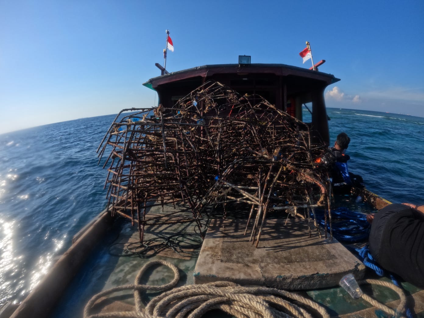 “Proses pengangkatan media transplantasi cukup berat karena dilakukan pada penyelaman kedua sekitar pukul dua siang di mana arus dan gelombang cukup kuat pada lokasi tersebut.”