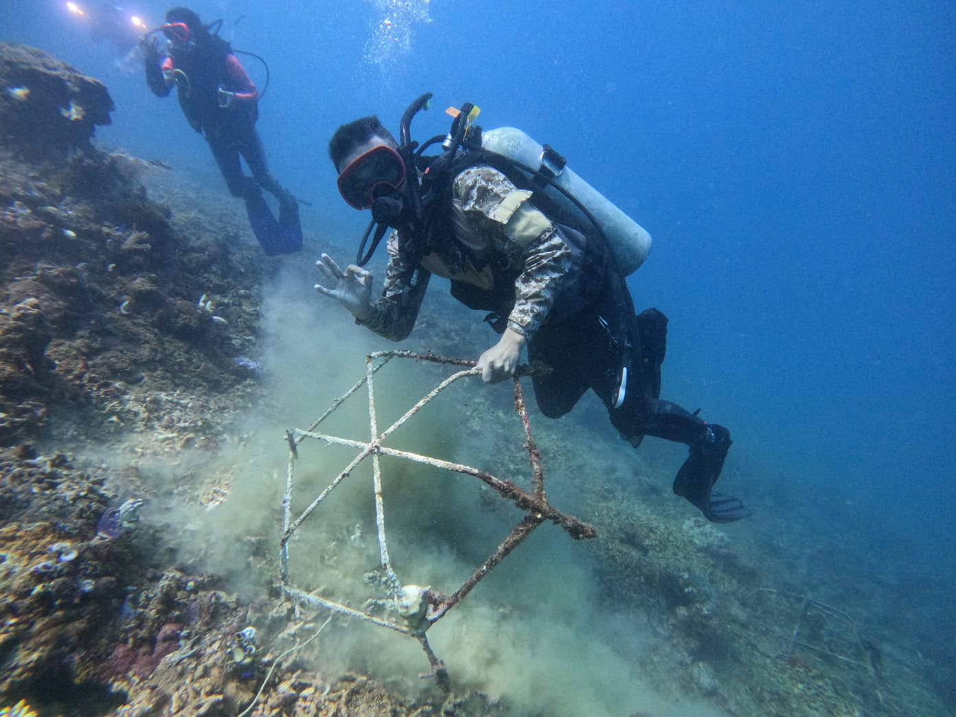 Mereka menamai aksi ini “Underwater Clean-up of Coral Transplant Waste”.