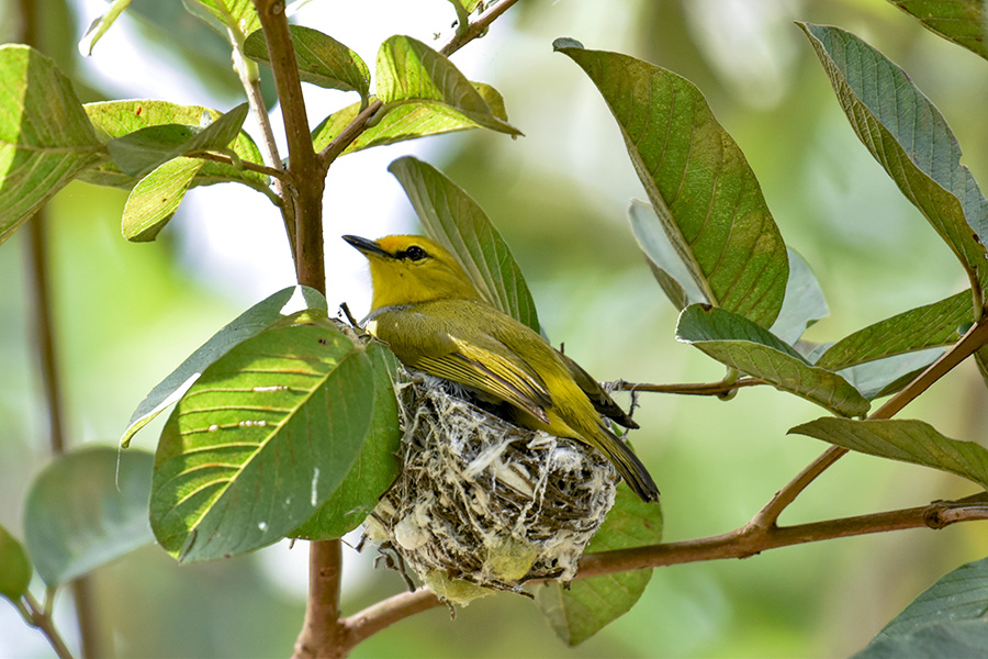 Pada periode berbiak, jenis ini memanfaatkan tangkai ranting kecil berbentuk huruf “V” yang menjulur horizontal sebagai gantungan dalam membangun sarangnya dengan ketinggian sekitar 1,5 meter dari tanah.