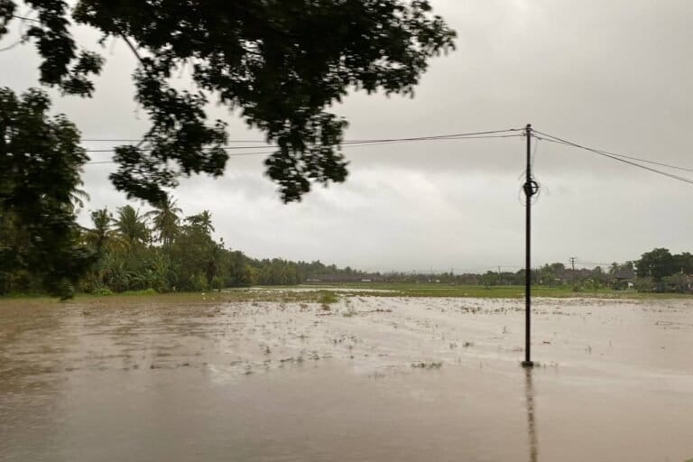 Di Jembrana, wilayah yang mengalami banjir bandang terhebat pada bencana 2022 juga membuat warga sekitar hilir sungai waswas ketika hujan lebih dari 24 jam. Hari pertama hujan, 7 Juli terlihat sebagian kebun warga berisi kelapa, kakao, dan pisang terendam. Air sungai juga meluap sampai sempadan.