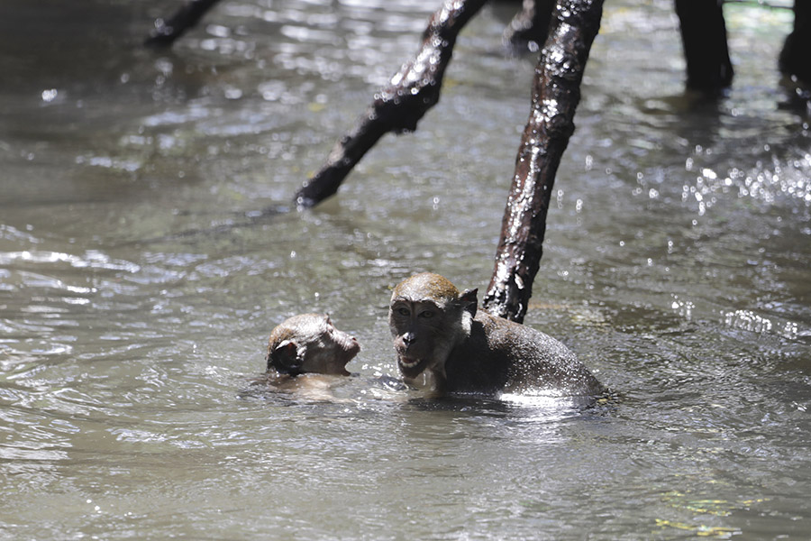Monyet ekor panjang [Macaca fascicularis] merupakan satwa liar yang sering terlihat di pinggir hutan maupun wilayah mangrove. Jenis ini menyukai buah-buahan dan juga memangsa berbagai jenis binatang kecil seperti ketam maupun serangga.