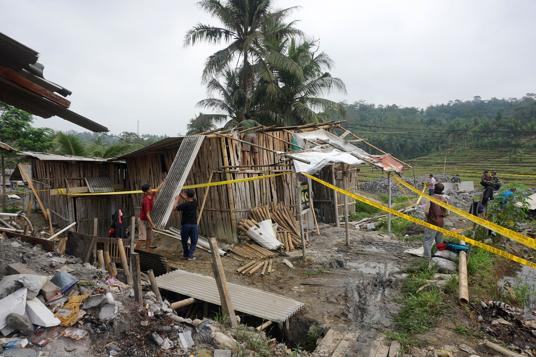 Sebelumnya, para penambang dengan sukarela merobohkan lapak-lapaknya. Biasanya lapak tambang yang ada sumurnya dibangun rumah-rumahan. Ratusan warga penambang merobohkan dan mengambil barang-barang yang masih dapat dipakai untuk keperluan lainnya. Sementara sumur-sumur masih banyak yang dibiarkan menganga, sehingga berbahaya. Ada sebagian yang ditutup dengan kayu pada bagian atasnya.
