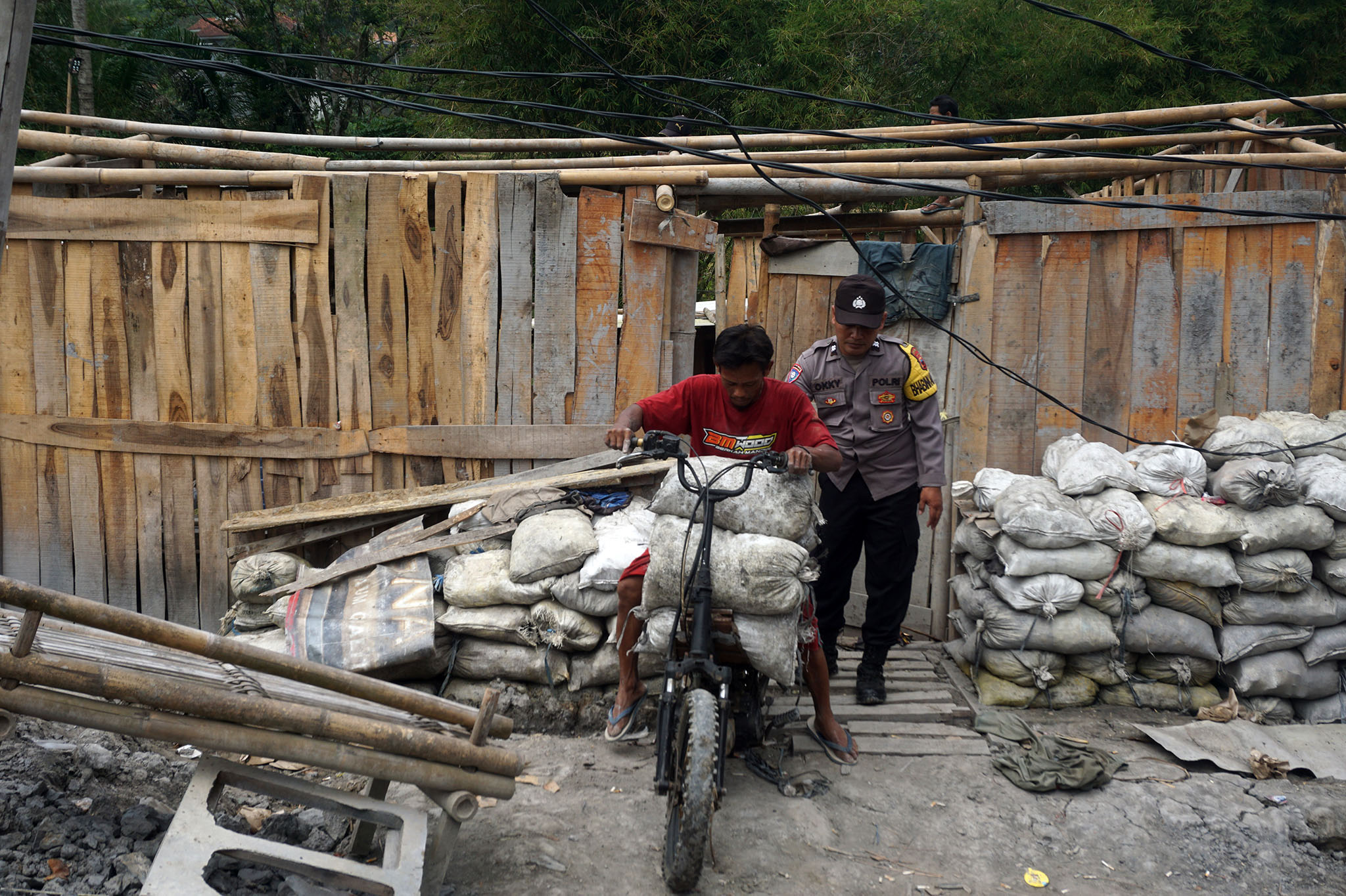 Para penambang juga membawa kabel dan berbagai macam peralatan tambang lain yang biasa dipakai untuk mencari emas. Telihat juga para penambang yang membawa hasil tambang berupa tanah dengan kandungan emas dan telah dimasukkan ke dalam karung seberat 30 kg.