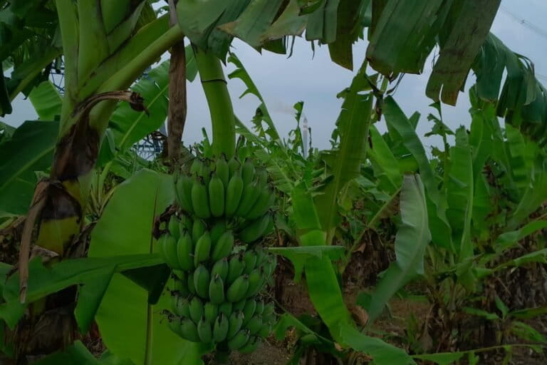 Selain kelapa, pisang juga tengah terancam. Pada lahan pertanian Surmi dan Satia, pisang memang tumbuh, tetapi daun bercak-bercak bolong, menguning dan sebagian lain mati. Buah, kalau dikarbit tak matang. Kalau dibiarkan justru membusuk.