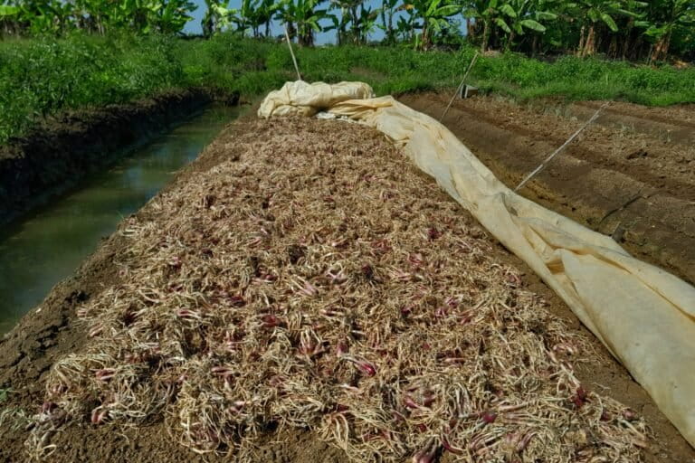 “Bawang merah [harganya] mahal. Ini nanam 40 kilogram, tapi pada mati dan busuk.”