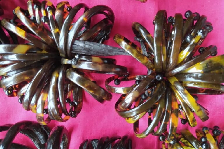 “Ini cincin dan gelang dari penyu,” kata penjual memperjelas.