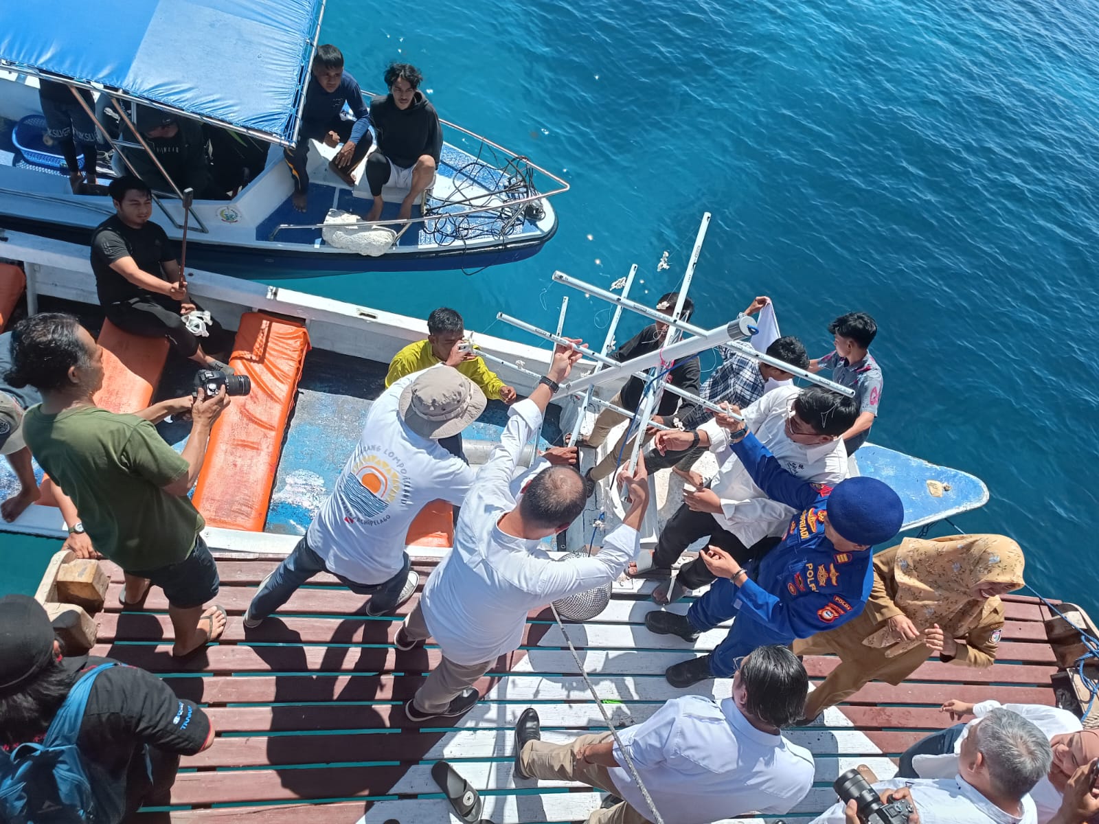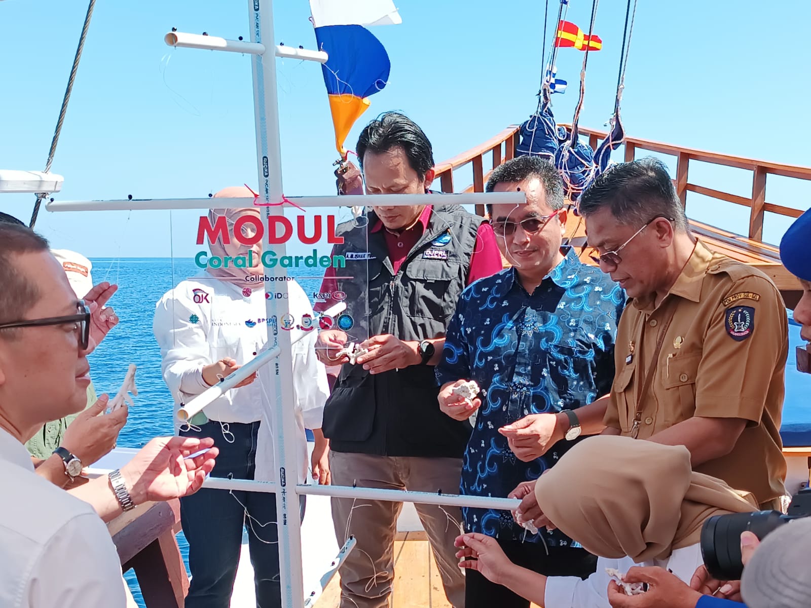 Kegiatan pagi itu adalah serah terima bantuan modul CTN, yang diberikan oleh Yayasan Keanekaragaman Hayati Indonesia (KEHATI) bersama Pasar Modal Indonesia yang difasilitasi oleh Yayasan Kitaji Pinisi kepada komunitas Sangkarang Ocean Dive (SOD) dan Penyu Lestari sebagai mitra yang nantinya memasang modul dan monitoring coral garden di wilayahnya masing-masing.