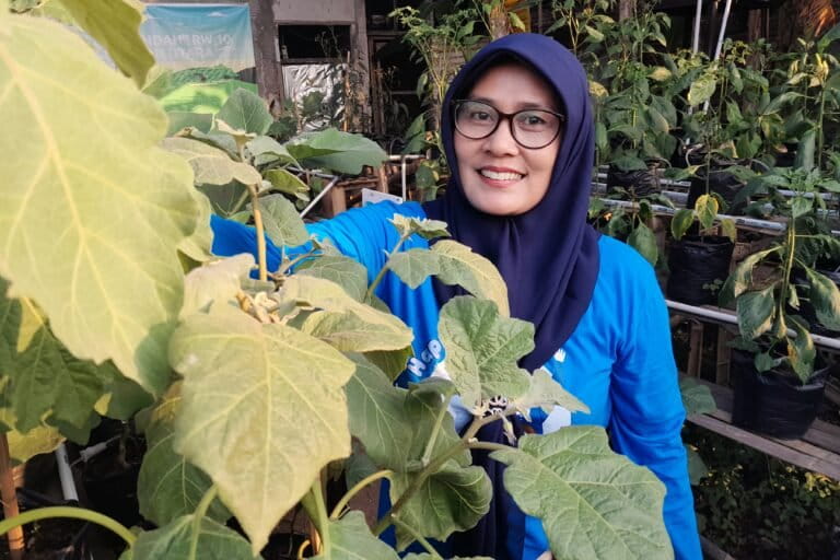 Mereka sudah panen dua kali. Rahmah bilang, waktu panen jadi lebih singkat berkat pupuk kompos. Dia contohkan, terong biasa panen saat tanaman berusia tiga sampai empat bulan, dengan kompos bisa dua bulan saja.