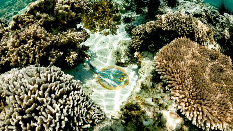 Pari totol biru [Taeniura lymma] memiliki warna yang cantik dan mencolok ketika bersembunyi di antara terumbu karang. Namun, seperti kebanyakan ikan pari, ia punya dua duri sengatan di pangkal ekor yang siap mencambuk saat merasa terancam. Salah satu spesies ikan pari [stingray] dari keluarga Dasyatidae ini juga punya perilaku makan yang unik, dan di … Lanjutkan membaca Cara Unik Pari Totol Biru Menghindari Predator