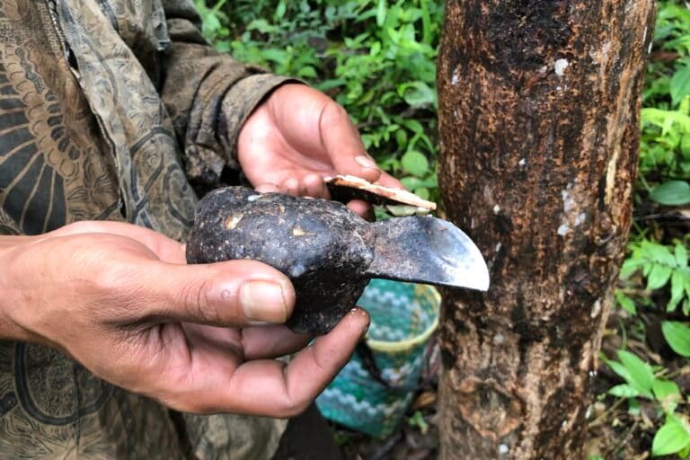 Hari itu, pria 60 tahunan ini pergi menderes getah kemenyan sambil menyandang bakul bambu.