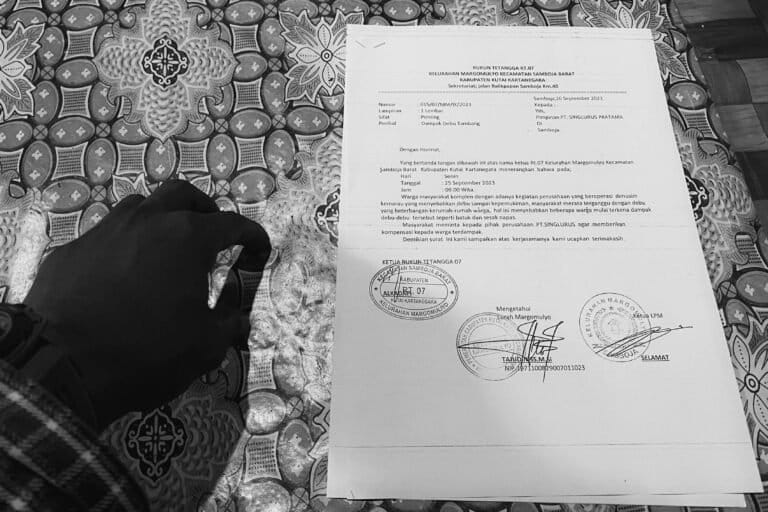 Khadafi, Ketua RT07 Kelurahan Margomulyo, membenarkan laporan warga soal keluhan debu. Dia telah melaporkan keluhan itu ke kelurahan. Saat kemarau, katanya, debu batubara dari aktivitas perusahaan kian parah.