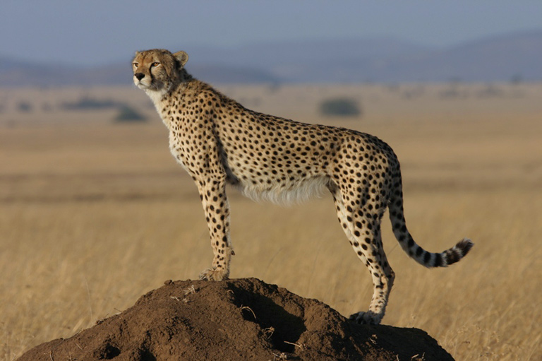 Dalam keluarga kucing besar, cheetah adalah pelari tercepat di dunia. Satwa ini mampu mencapai kecepatan 100 km per jam hanya dalam waktu 3 detik. Catatan waktu tercepatnya adalah 114 km per jam, dan bisa menyelesaikan jarak tempuh 100 m hanya dalam waktu 6 detik.
