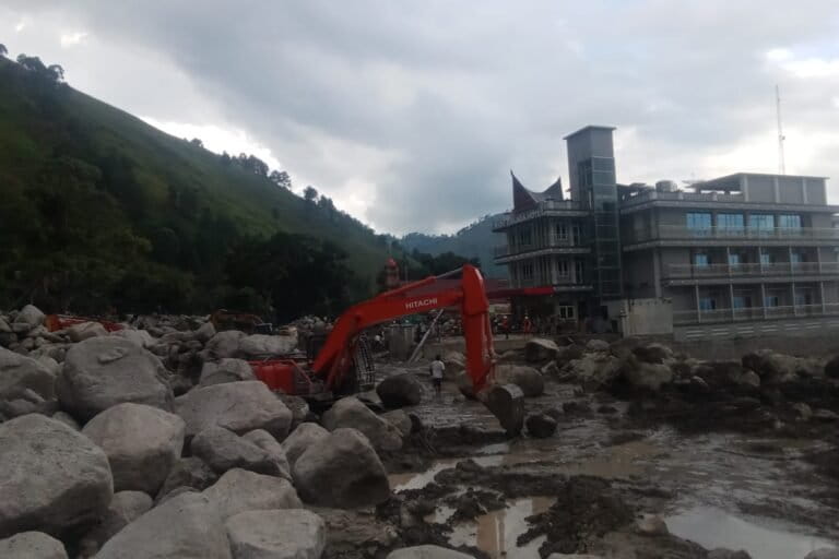 “Hujan sedang dan lebat dengan intensitas 55 mm hingga tadi, berlangsung di hulu dan hilir. Bongkahan batu akibat sorongan dinding di aliran sungai terkubur di lereng, batu terbawa arus,” kata Ramost, BMKG Wilayah I Sumut saat diwawancara di Simangulampe.