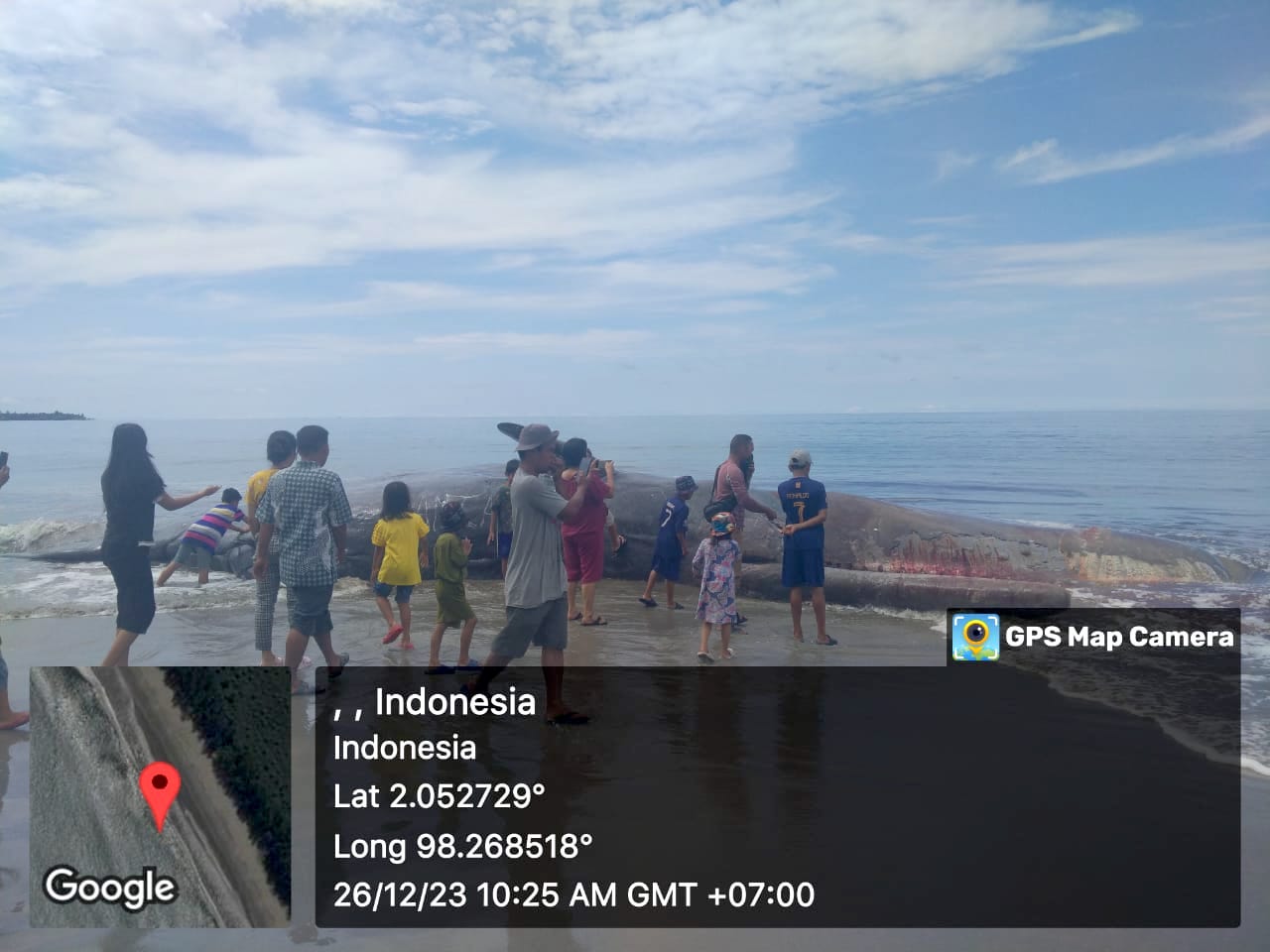 Ketika sedang menuju lokasi kejadian, mereka dihubungi pihak Kecamatan bahwa paus itu sudah mati. Begitu tiba di lokasi, tim gabungan langsung melakukan clear area dan meminta kepada masyarakat untuk menjauh dari bangkai paus sperma tersebut.