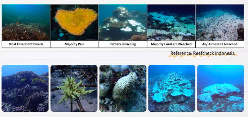 Anand, peneliti dari Yayasan Alam Lestari Indonesia (LINI), mengatakan ditemukan pemutihan dari pemantauan pada 4 dan 24 Januari 2024, setelah ada warning dari NOAA jika kawasan Tejakula, Buleleng, Bali termasuk level 1. Dari data temperatur logger pada 11 November sampai 24 Januari ada peningkatan suhu tertinggi sampai 32,4 C. Kesimpulannya ada bleaching parsial dengan sejumlah genus yang terdampak.