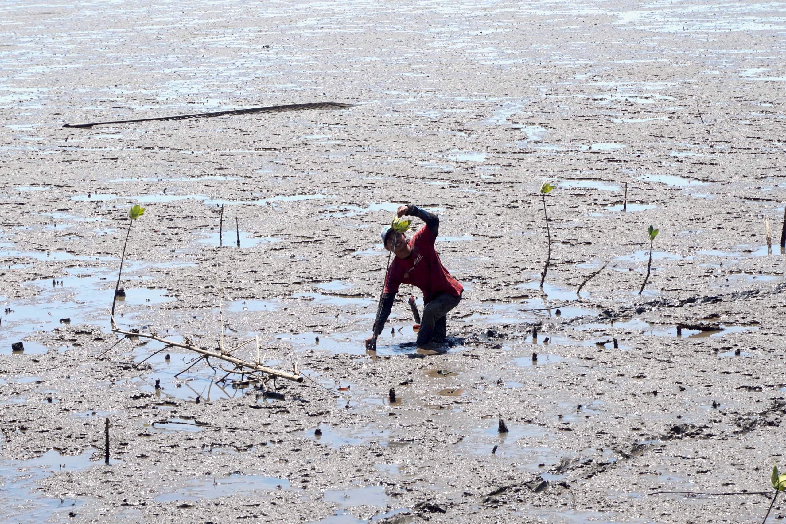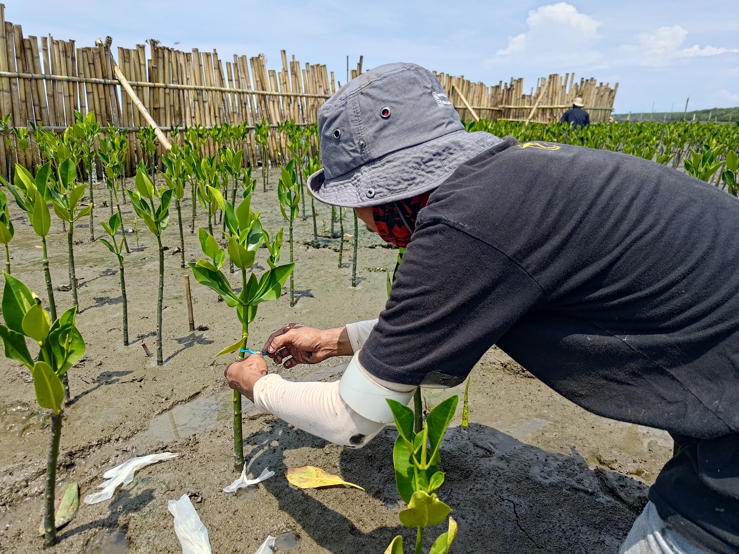 “Bangunan rekayasa untuk mengatasi faktor gangguan membantu mangrove tumbuh dengan baik serta tinggi substrat bertambah. Pemasangan perangkap bibit mangrove dengan menggunakan waring efektif untuk merangkap bibit-bibit yang terbawa arus untuk kemudian tumbuh di lokasi yang sesuai,” lanjutnya.