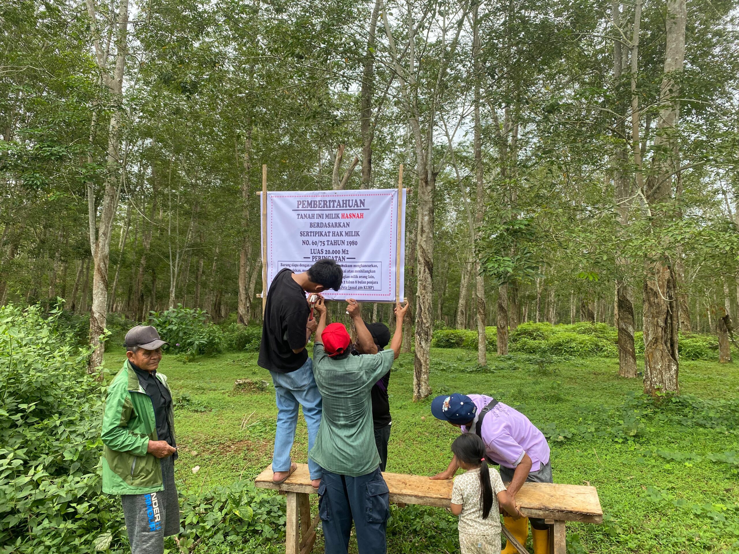 - Kegiatan pemasangan papan bicara dan penanaman dilakukan sebagai penanda bahwa dalam areal permohonan pembaruan HGU PT. Lonsum terdapat hak masyarakat di atasnya, untuk memudahkan Panitia B yang akan melakukan verifikasi.