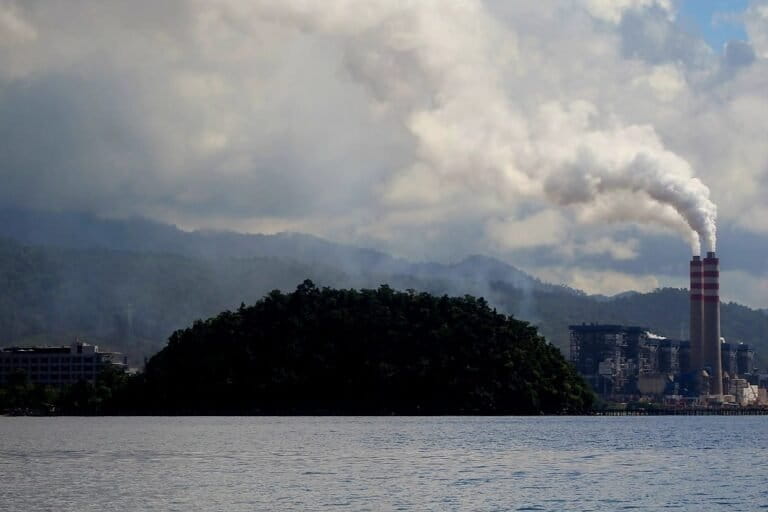 Saat kami menyusuri jalan rusak, bau batubara dan belerang menusuk hidung. PLTU, pabrik smelter yang mengolah bahan baku nikel, berjejer di sepanjang jalan mengeluarkan asap yang menyebar partikel-partikel zat berbahaya. Mesin-mesin bekerja sepanjang waktu, 24 jam. Truk sampah pengangkut limbah batubara berseliweran.