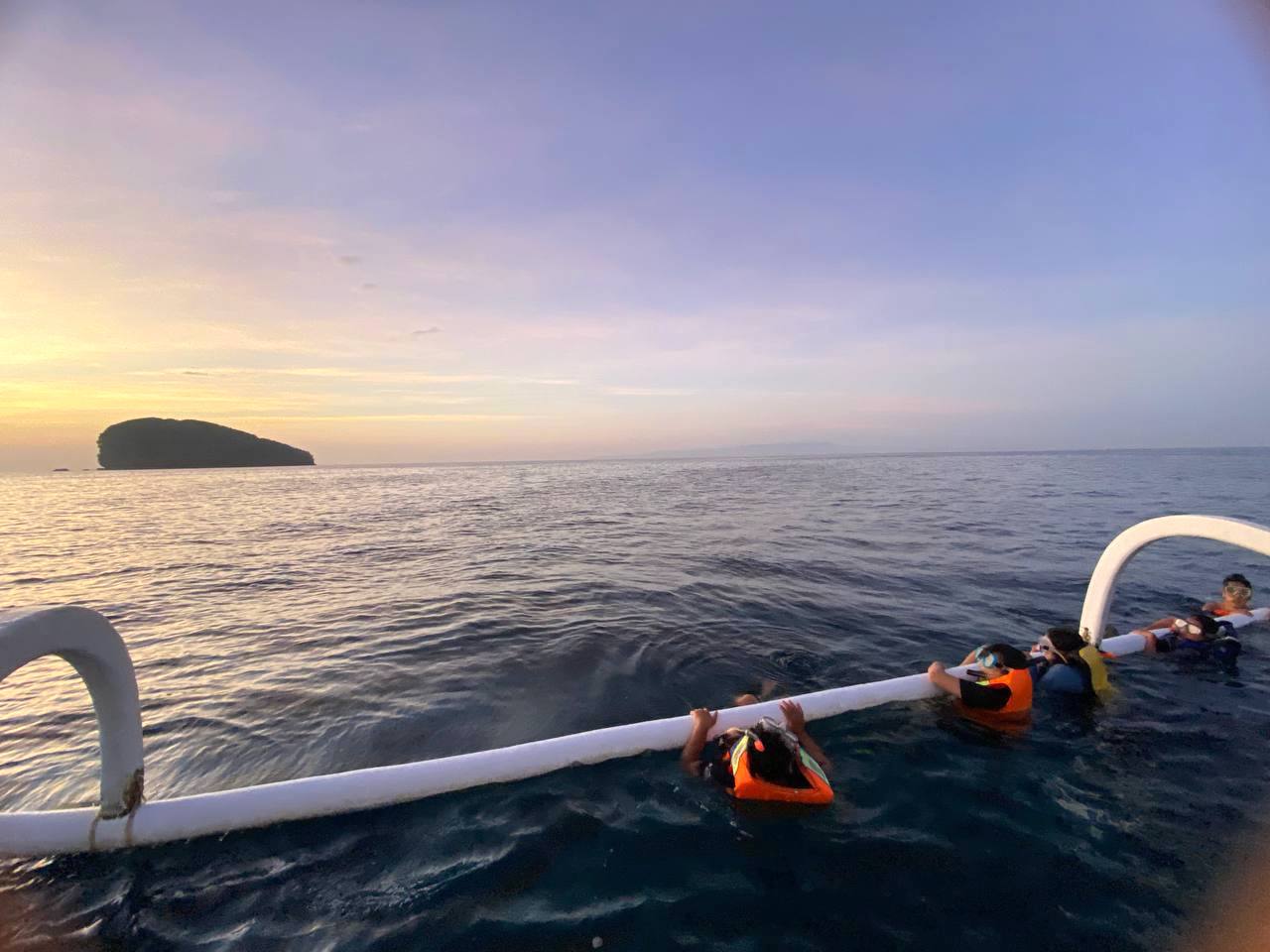 Waktu terbaik untuk mulai wisata bahari dan eksplorasi Pulau Paus adalah dini hari sebelum matahari terbit. Kami berjanji bersua di pos nelayan sekitar jam 5 pagi. Sunrise tentu saja waktu terbaik di sisi timur pulau Bali.