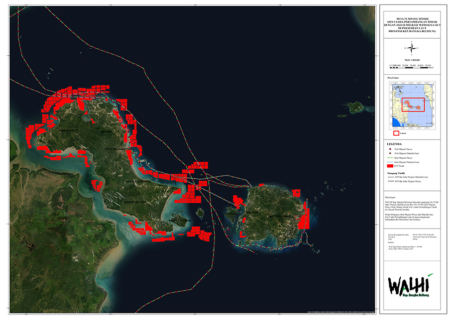 Di sisi lain, analisis Walhi Kepulauan Bangka Belitung menyatakan, ada sejumlah izin usaha pertambangan [IUP] yang tumpang tindih dengan jalur migrasi penyu dan mamalia laut dilindungi ini. Tercatat, sepanjang 46,45 mil jalur migrasi mamalia laut dan 105,95 mil jalur migrasi penyu akan hilang akibat IUP timah di wilayah tersebut.