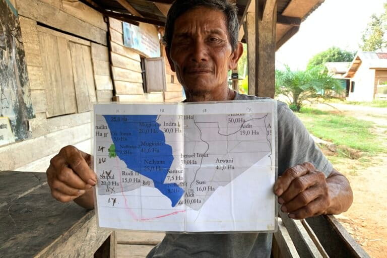 “Punyaku 76 hektar belum diganti rugi kok ngomong sudah habis. Aku ambil peta—lahan—ternyata di situ dimasuki nama orang lain. Ada 25 hektar, 5, 9, 15, 10 dan 12,5 hektar. Mereka punya lahan, tetapi di tempat lain. Artinya, PT salah bayar.”