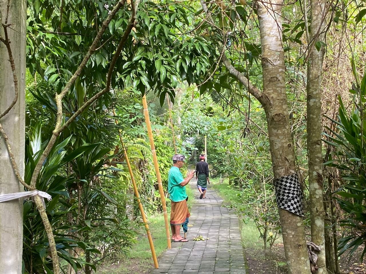 “Warga luar banyak yang mencari ke hutan ini. Cukup menghaturkan canang saja di tempat suci di sini,” ujar Made Karsana, salah satu warga yang menjaga. Ia menjaga bergiliran bersama 11 warga lainnya, tiap hari ada 2 orang.