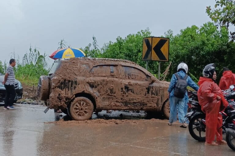 Saya bertemu seorang korban selamat dari longsoran. Mobil sudah penuh lumpur. Anak-anak keluar dari mobil itu sambil menangis gemetar.