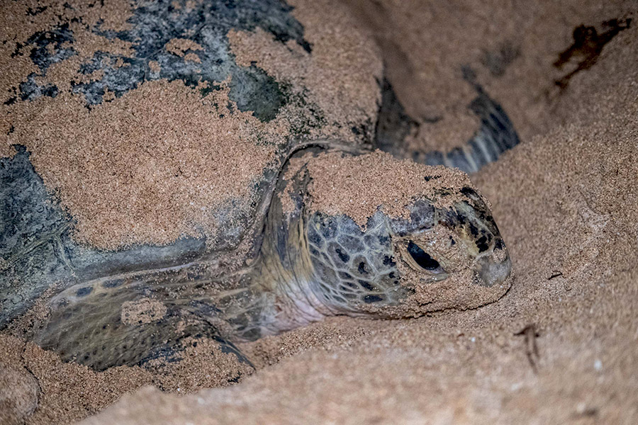 “Beberapa tahun terakhir, penyu lebih sering bertelur di bagian utara dan timur. Ini mungkin karena wilayah barat dan selatan sering digunakan nelayan sebagai tempat singgah, sehingga terlalu terang dan banyak sampah,” jelasnya.