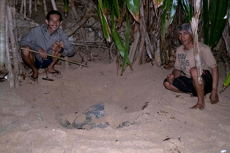 “Alhamdulillah, akhirnya ketemu, meski kita sedikit terlambat karena penyu sudah menimbun telurnya.”