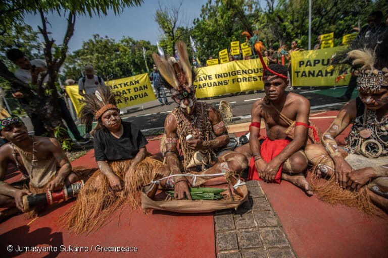 “Perjuangan Suku Awyu dan Moi adalah upaya terhormat demi hutan adat, demi hidup anak-cucu mereka hari ini dan masa depan. Secara tidak langsung kita semua,” kata Sekar Banjaran Aji, Juru Kampanye hutan Greenpeace Indonesia.
